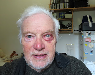 11.00 Everybody I met this morning, when I went for the paper, has been asking where I got the black eye; I thought it was just one of those red eyes things. When I got back to Ivy and had a look in the mirror....it’s a proper black eye. It was itchy for a wee while and I might have rubbed it, but I can’t remember it being sore. Anyway I have a ‘keeker’ .... I’ll need to get the sun glasses out.